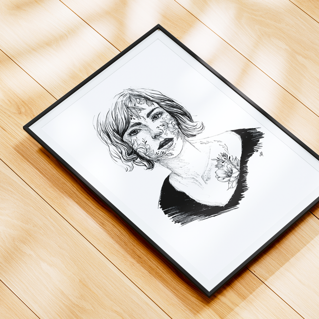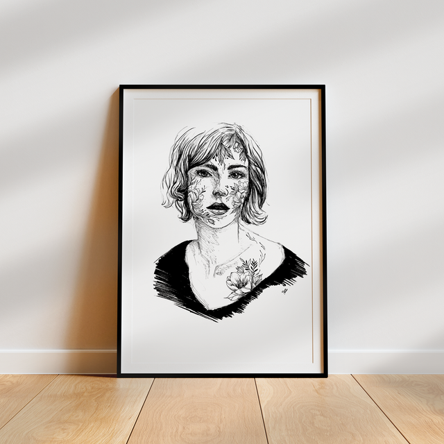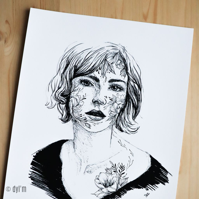 Impression haute qualité à partir d'une illustration réalisée à la main, aux feutres à pigments et encre de chine.