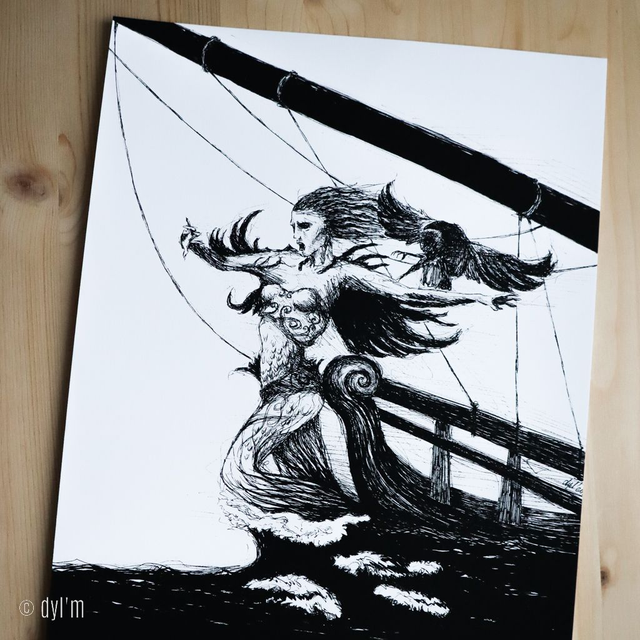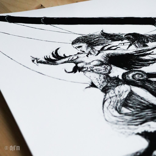 Impression haute qualité à partir d'une illustration réalisée à la main, aux feutres à pigments et encre de chine.