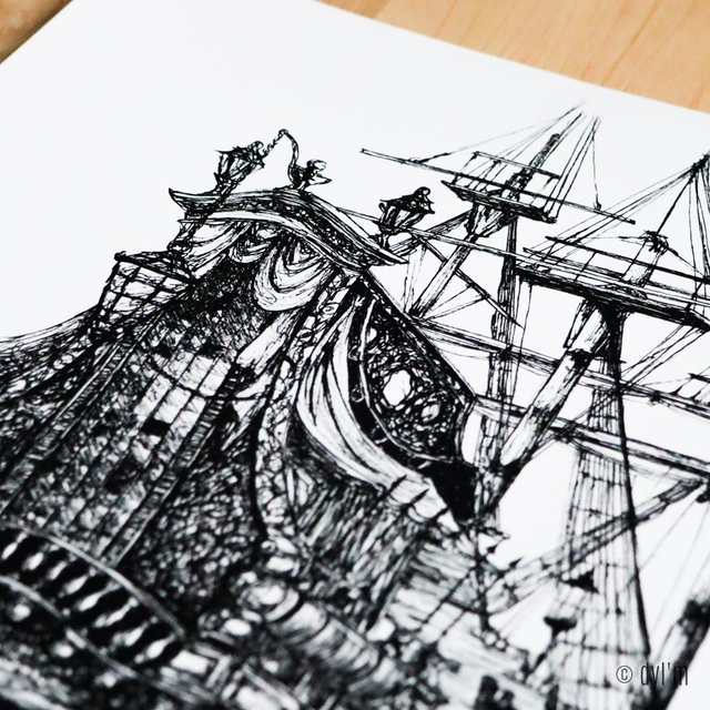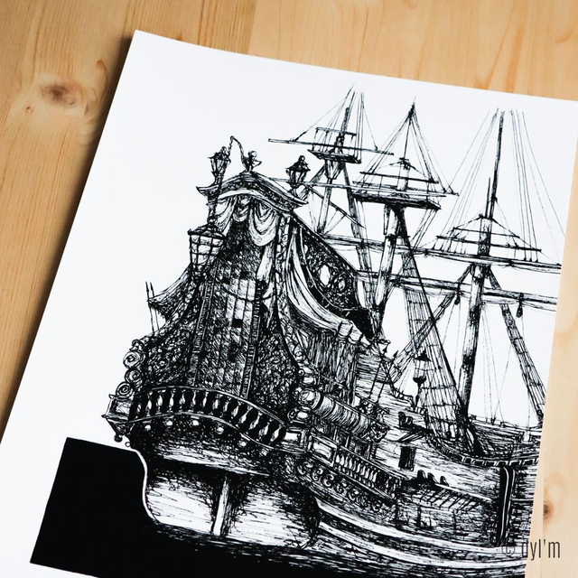 Impression haute qualité à partir d'une illustration réalisée à la main, aux feutres à pigments et encre de chine.