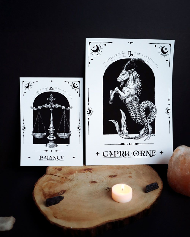Plonge dans l’énergie brute des astres : chaque signe du zodiaque est dessiné comme un talisman, chargé de symboles, pour les amoureux du zodiaque et de l’art mystique.